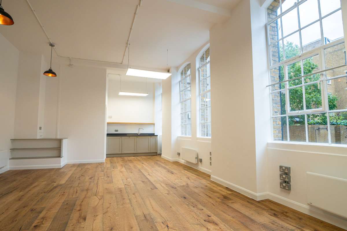 This Self-contained Office Space Is Open-plan And Located On The Raised Ground Floor Of The Flag Store, A Mixed-use Character Warehouse Conversion. It Features High Ceilings And Large Crittall Windows Overlooking The Jubilee Yard Courtyard. The Space Also Includes Wood Flooring, A Wc, And A Kitchenette.