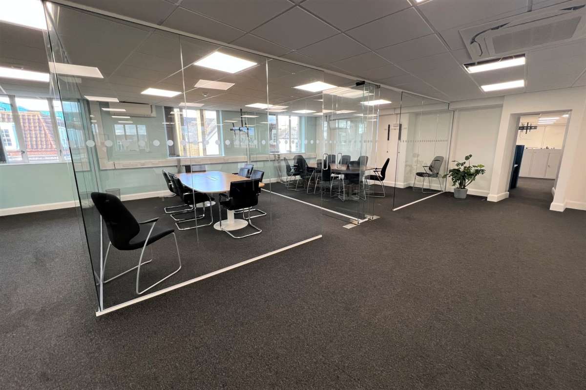 The Available Suite Is Situated On The Second Floor, Accessed Via A Passenger Lift And Provides Office Accommodation With Glass Partitioned Meeting Rooms And A Kitchenette.