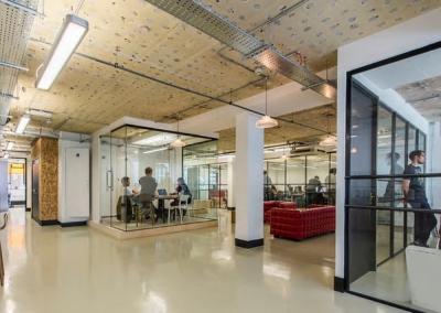 Right At The Entrance Of Liverpool Street Station, You’ll Find This Impressive Building On The Corner. 50 Liverpool Street Easily Catches The Eye, With Its Arched Windows And Decorative Original Features, So Inside We’ve Kept Things Clean, With Contemporary Design And Lots Of Natural Light. We’re Lucky To Have 50 Liverpool Street As Part Of The Community – It Was The Target Of London’s First Attack In Wwi And Was Saved From Demolition In The Now Famous 1979 Conservation Campaign Run By Sirs John Betjeman And Spike Milligan. Standing In Such An Iconic Area With A Vibrant Social Scene And Some Pretty Enviable Culinary Offerings, We Knew This Building Would Be Special. We Ran With Its Classic Architecture And High Ceilings To Create Private Offices, Meeting Rooms, Event Space And A Drop-in Lounge With Modern Copper And Steel Mesh Accents, While Keeping Our References To The Classic With Stained Timber And Panelling.